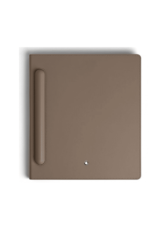 De Montblanc Digital Paper Folio is gemaakt van een soepel kalfsleer en is een luxe en verfijnde aanvulling op je Montblanc Digital Paper ervaring. De Folio is vervaardigd in Italië met dezelfde aandacht voor detail als de mooiste stukken van Montblanc en biedt zowel bescherming als elegantie. Het gladde, gestructureerde ontwerp is voorzien van discrete magnetische houders die je apparaat moeiteloos en nauwkeurig op zijn plaatshouden, terwijl een slimme openingsfunctie het apparaat voorzichtig activeert wanneer je aan je werk begint. De Montblanc Digital Paper Folio is gemaakt voor mensen die luxe verfijning waarderen en brengt elegantie op elk moment, of je nu aan je bureau zit, het apparaat in je hand houdt of tijdens een meeting laat rusten. Het is een mooie balans tussen vorm, functie en tijdloosheid. Verkrijgbaar in de kleuren: zwart, mastic en inkt blauw.