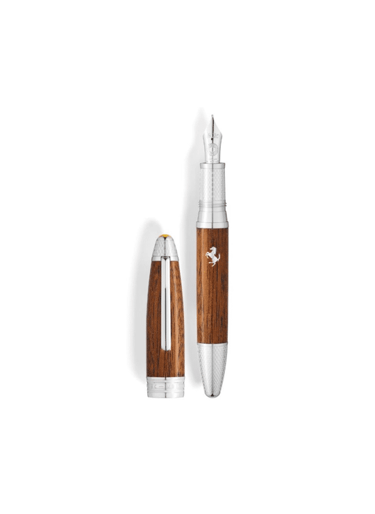 Het Tailor Made programma van Ferrari is opgebouwd rond drie collecties: Classica, Inedita en Scuderia. Ferrari klanten kunnen zich laten inspireren door één of meer van deze collecties en verschillende elementen aanpassen aan hun smaak. De Meisterstück Great Masters Ferrari Classica, de eerste editie die binnen dit programma wordt gelanceerd, is geïnspireerd op de Classica collectie, die een moderne draai geeft aan de stijlkenmerken en eigenschappen van de iconische GT’s van Maranello. Op basis van deze kenmerken is de pen een eerbetoon aan het ontwerp van het stuurwiel van de 250 GTO, en aan het gevoel en de droom om er een vast te houden. De vulpen heeft een 18 karaats massief gouden penpunt met rhodium coating en een speciale gravure. De dop is voorzien van het Montblanc embleem in gele hars,een knipoog naar het kleurenpalet van Ferrari. De platina gecoate accenten en clip met gravure doen denken aan de grip van een stuurwiel. Het lichaam en de dop van deze Meisterstück Great Masters Ferrari Classica is gemaakt van mahoniehout, verfraaid met een elegante zwarte laklaag en het iconische Ferrari logo van het steigerende paard. BINNENKORT BESCHIKBAAR, RESERVEER VIA INFO@KOCKX.BE